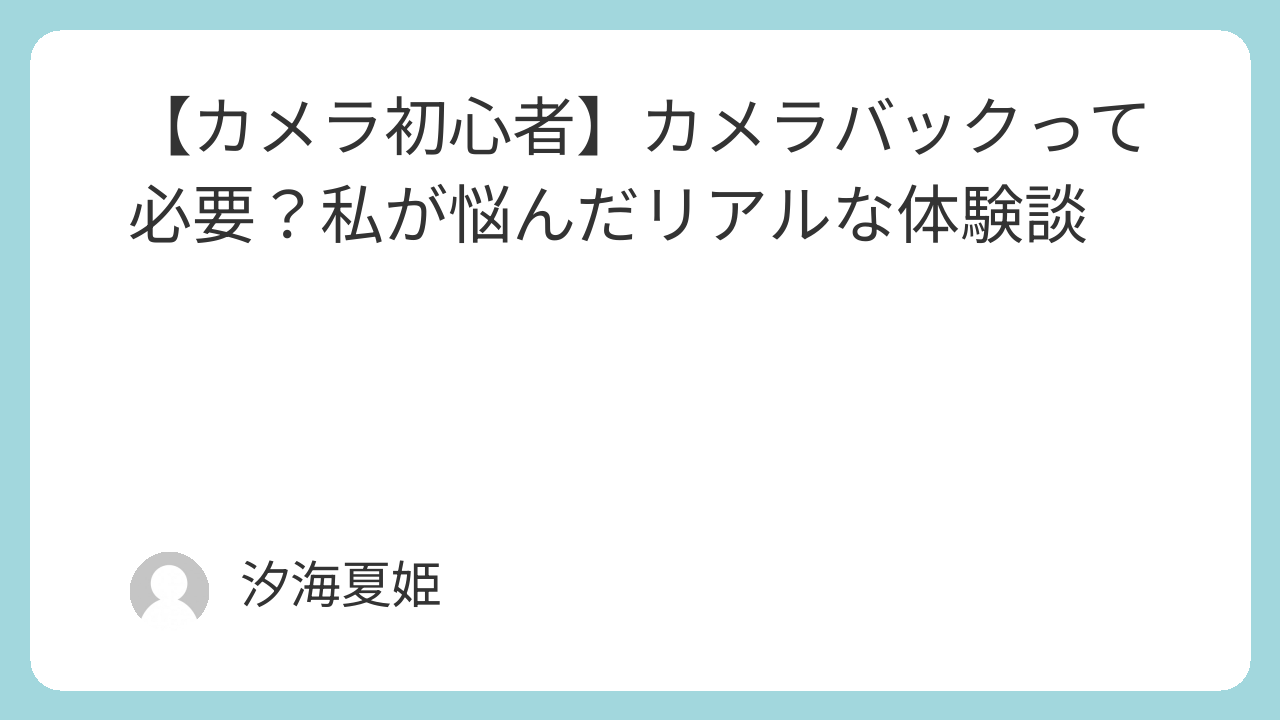 今日は、カメラ初心者の私が「カメラバック問題」とどう向き合ったのかを書いていきます。