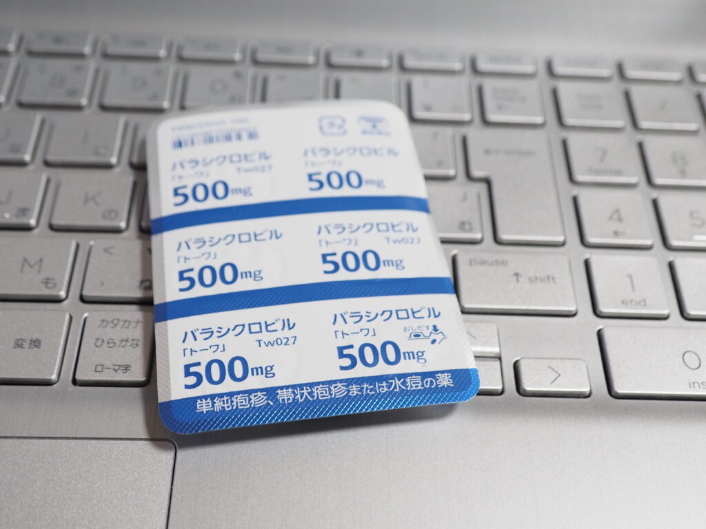 帯状疱疹の治療で処方されたバラシクロビル500mg。
