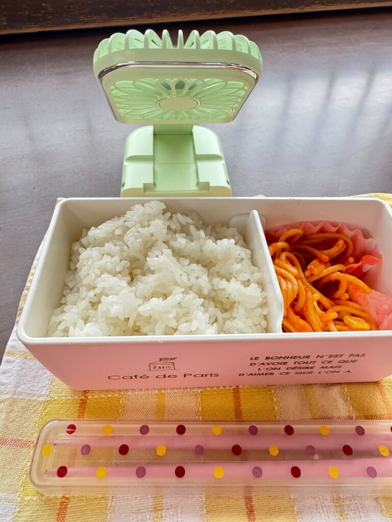 慌てて作ったお弁当でも、このハンディファンでサッと冷ませばすぐにお弁当袋へ。