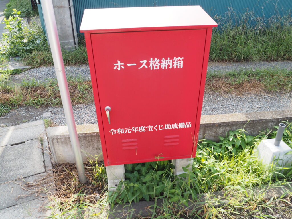 いつ何が起こるかわからないからこそ、こうした消防用ホース格納箱の存在はとても大切。