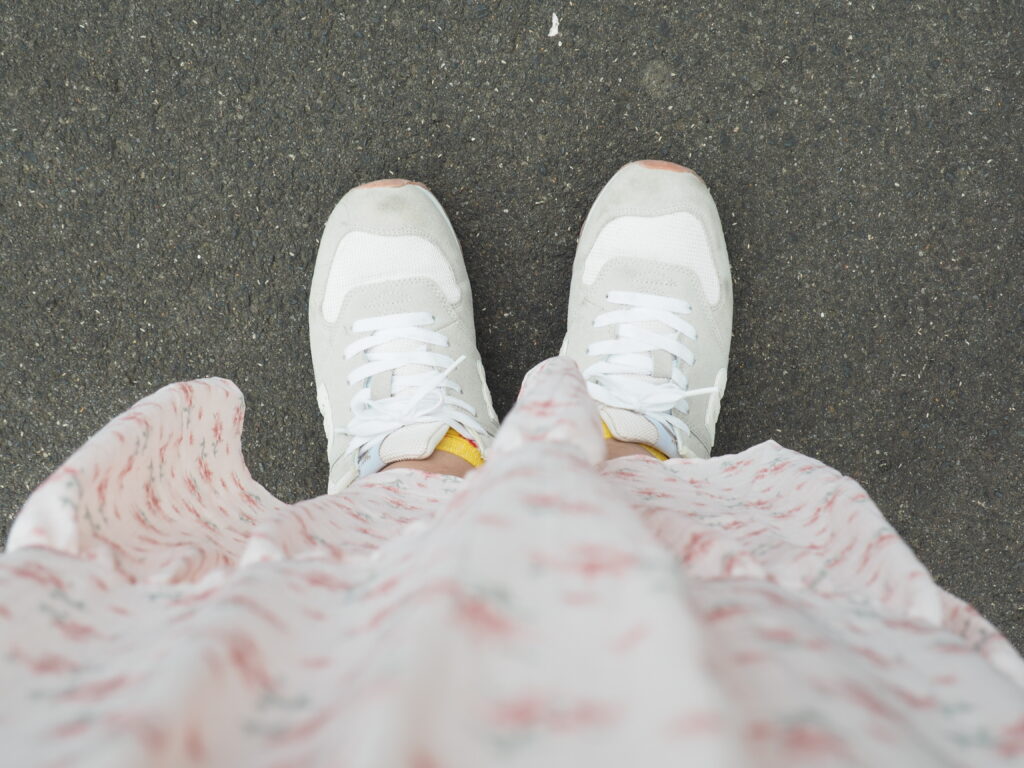 久しぶりに履いたスニーカーとお気に入りのワンピースを身につけると、不思議と心も軽くなり、一歩一歩が心地よい。