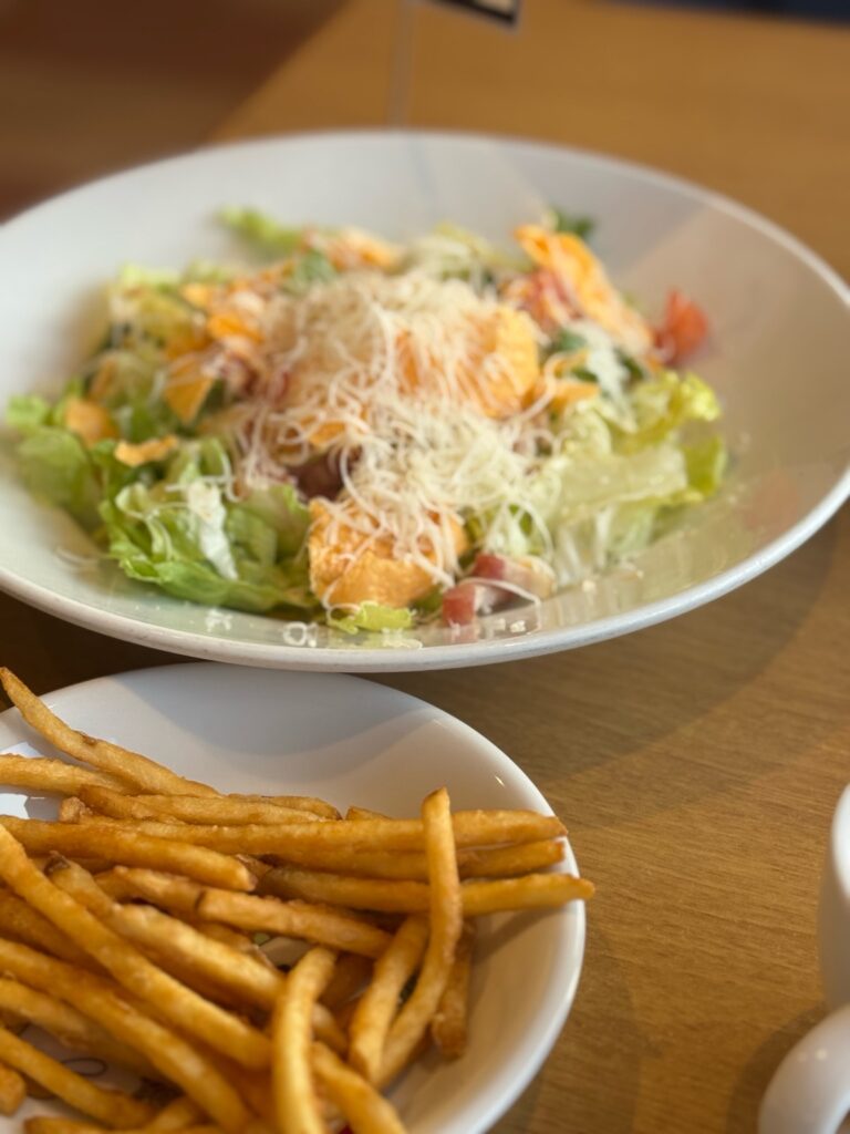 手前のポテトにピントを合わせて奥のサラダがふんわりとボケ感を出しました。