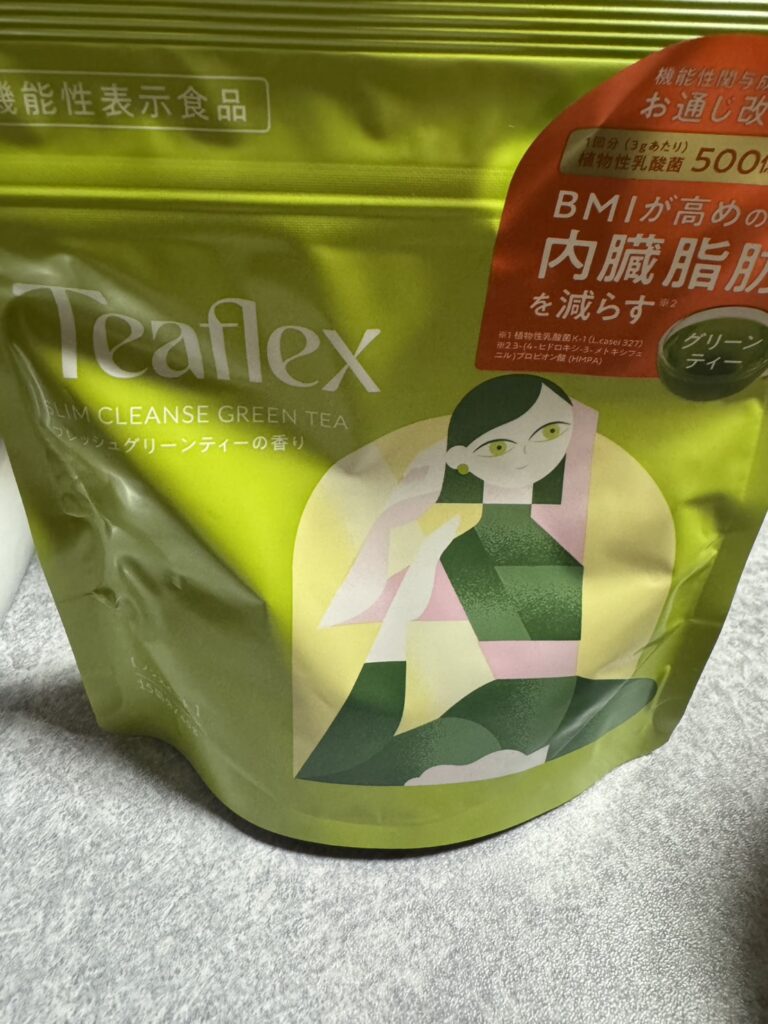 黄色味がかった黄緑色のTeaflexのパッケージが印象的だと思います。